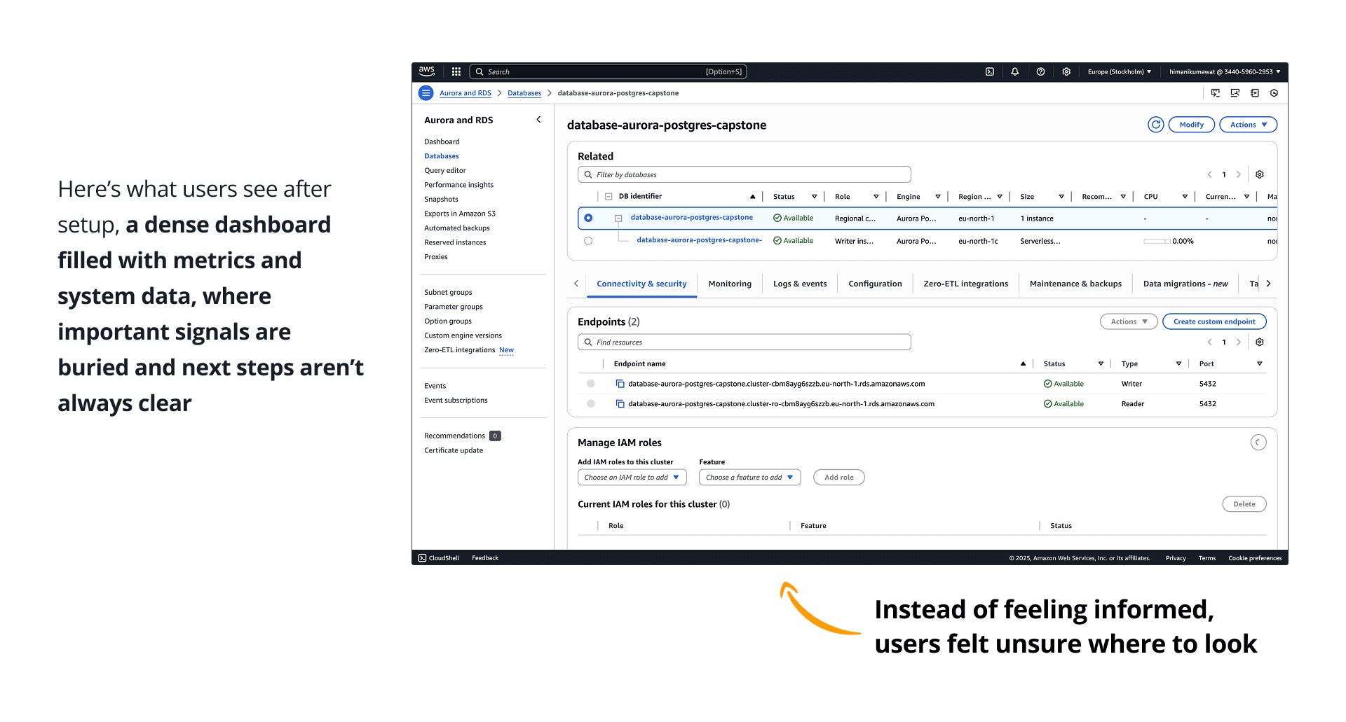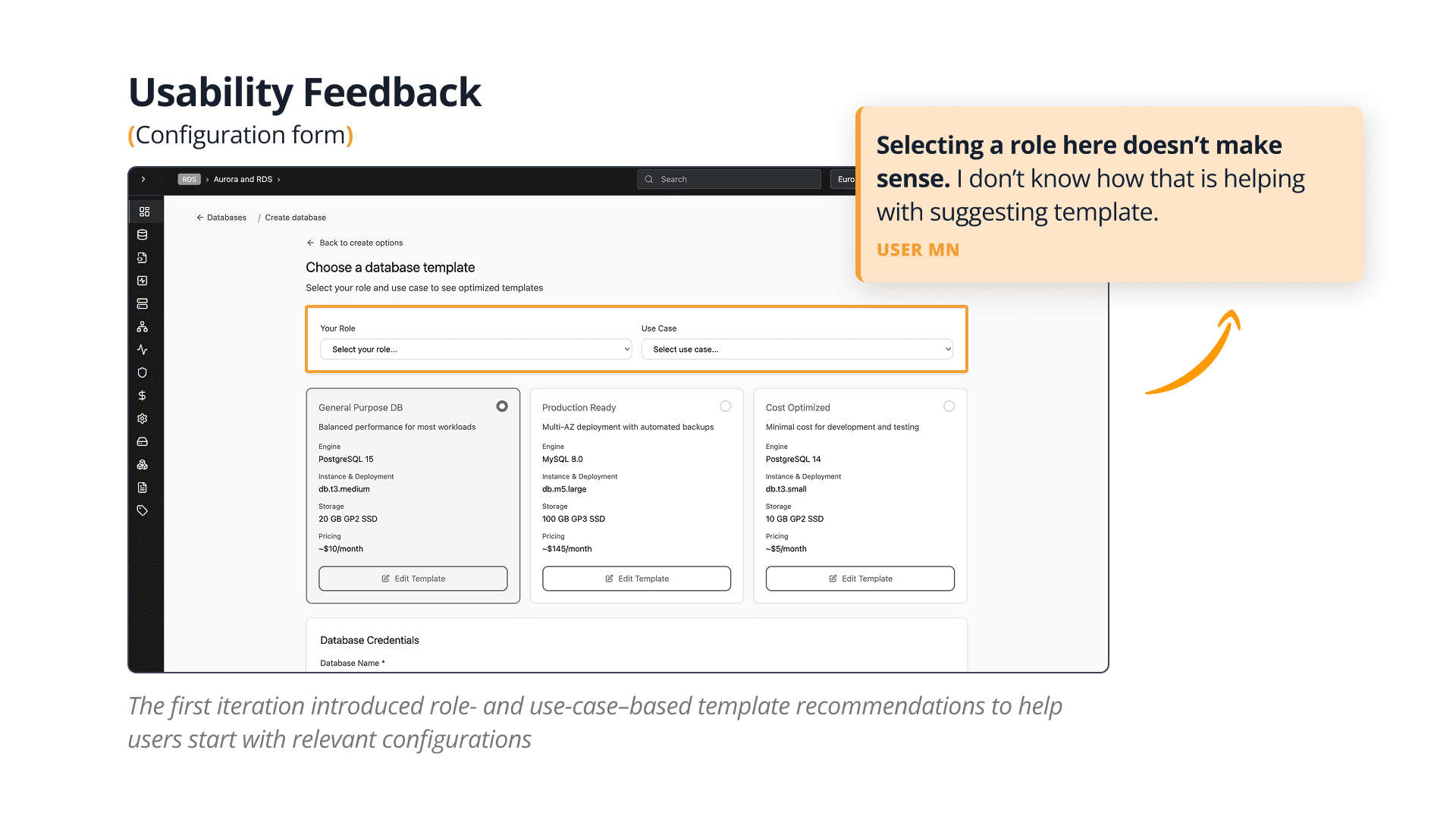 To ground this project in reality, we started by walking through the current AWS RDS onboarding flow